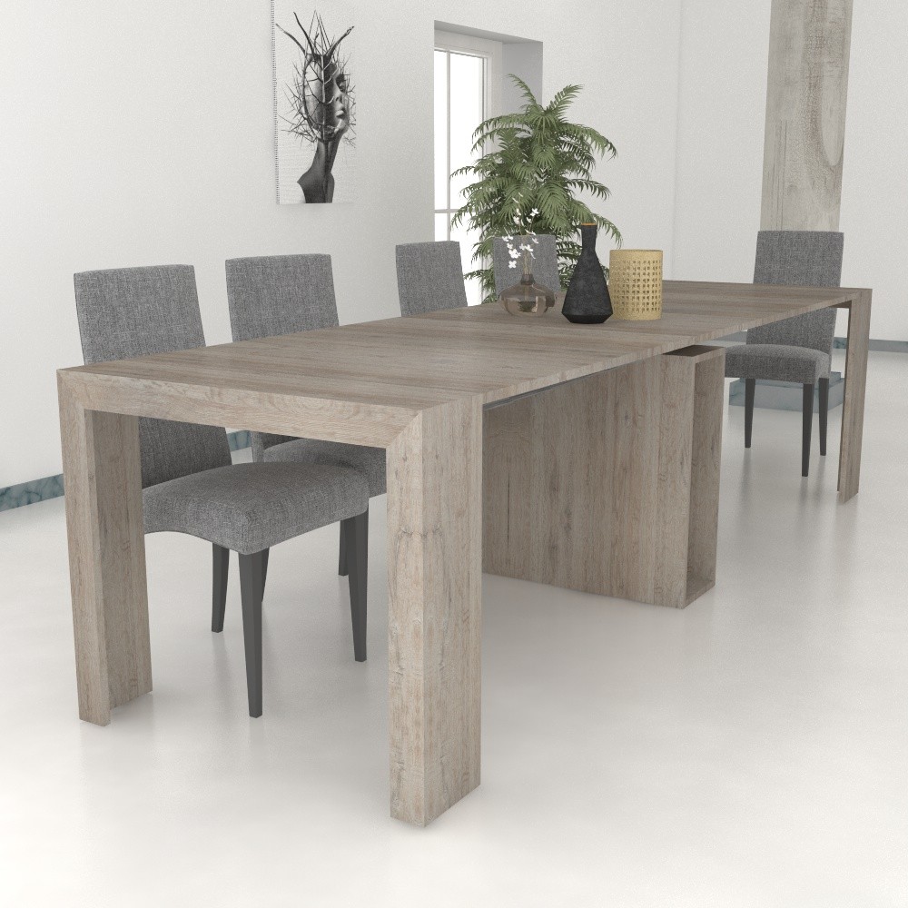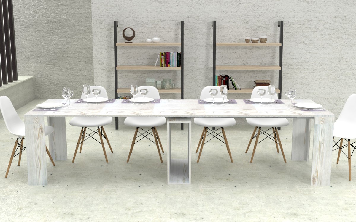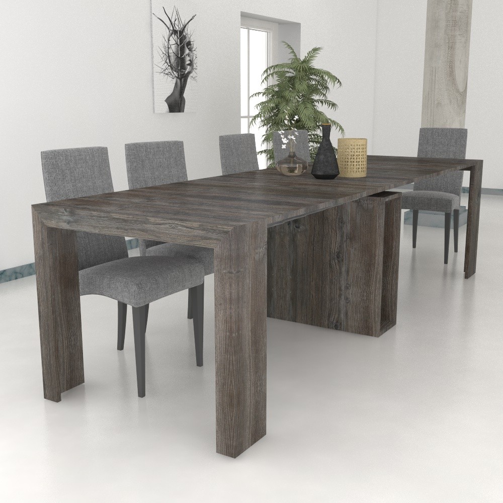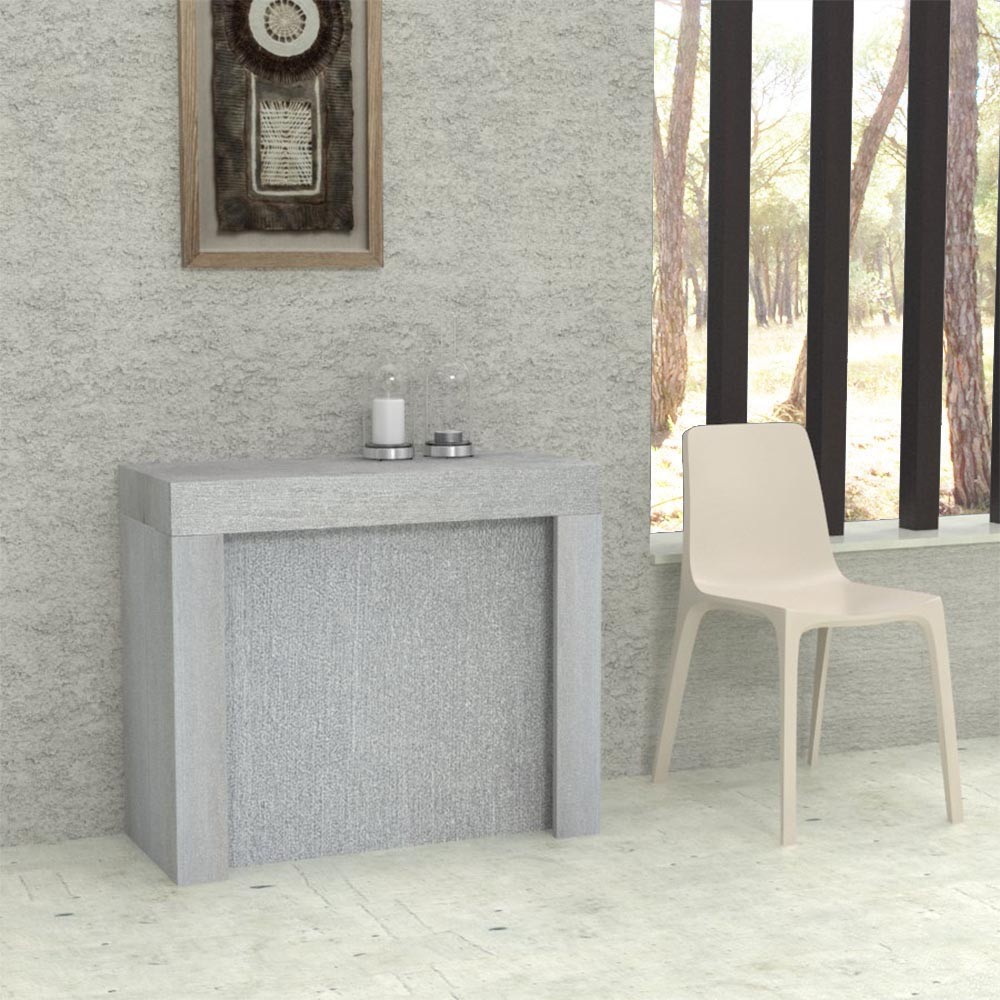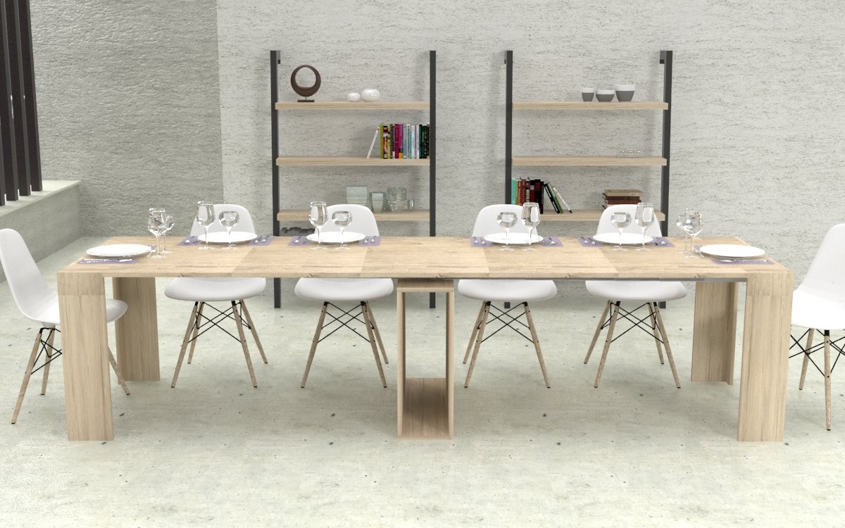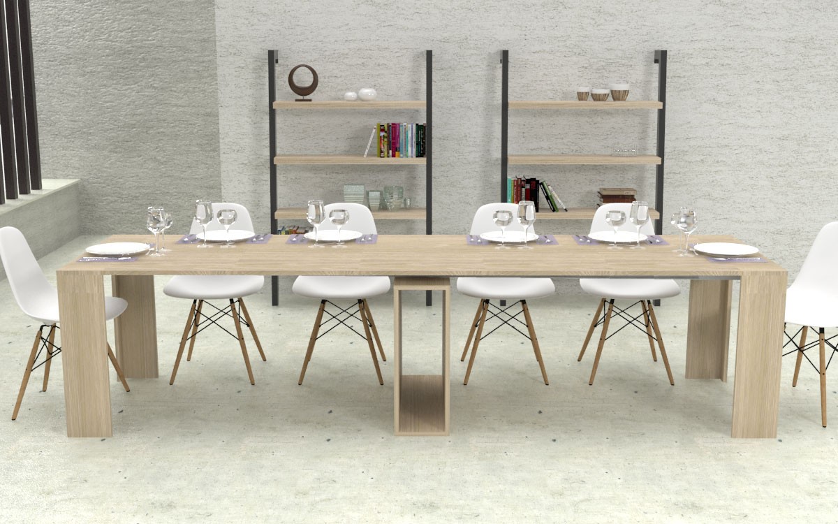 Ho acquistato questa consolle in quercia l'effetto è molto bello, il tavolo allungato riesce ad ospitare fino a 12 persone.