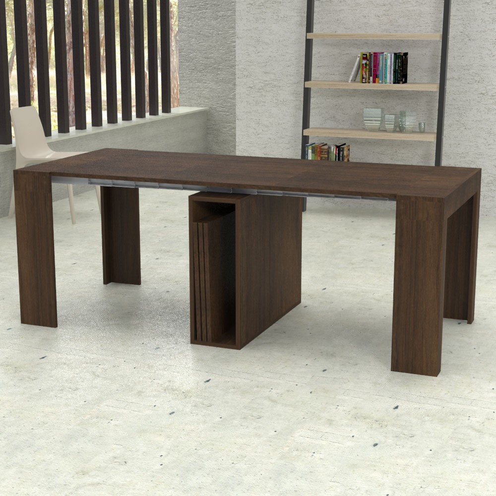 Ottimo prodotto sia chiuso che allungato e bello da vedere. In soggiorno fa la sua figura.Molto funzionale il vano portaprolunghe che permette di risparmiare spazio.