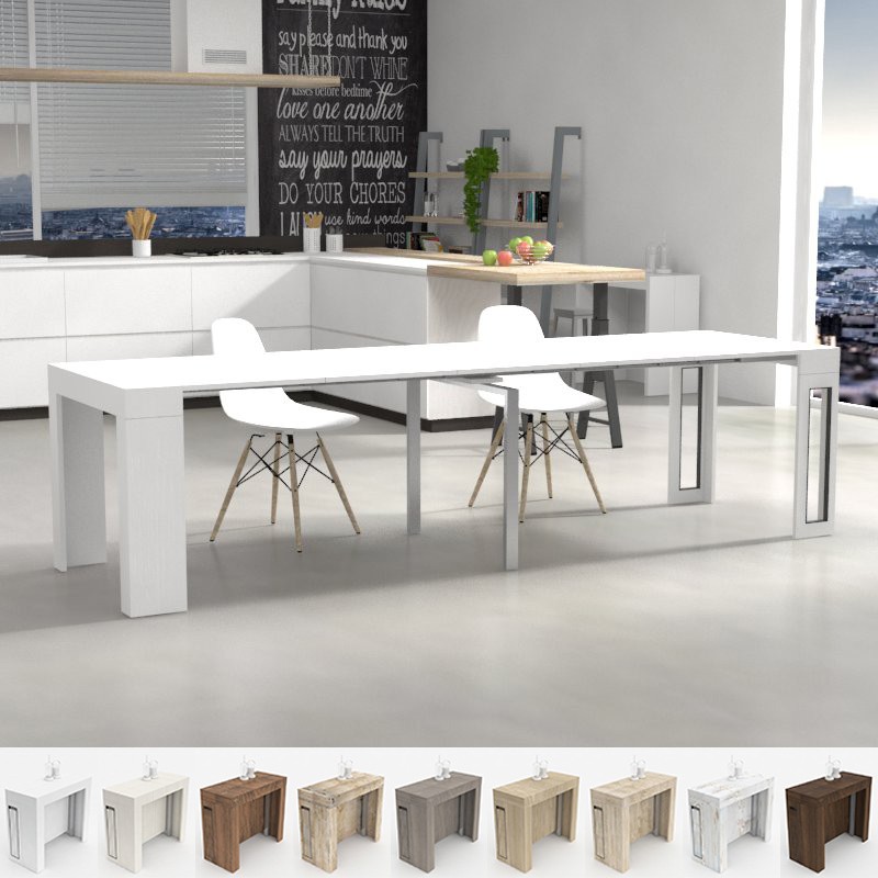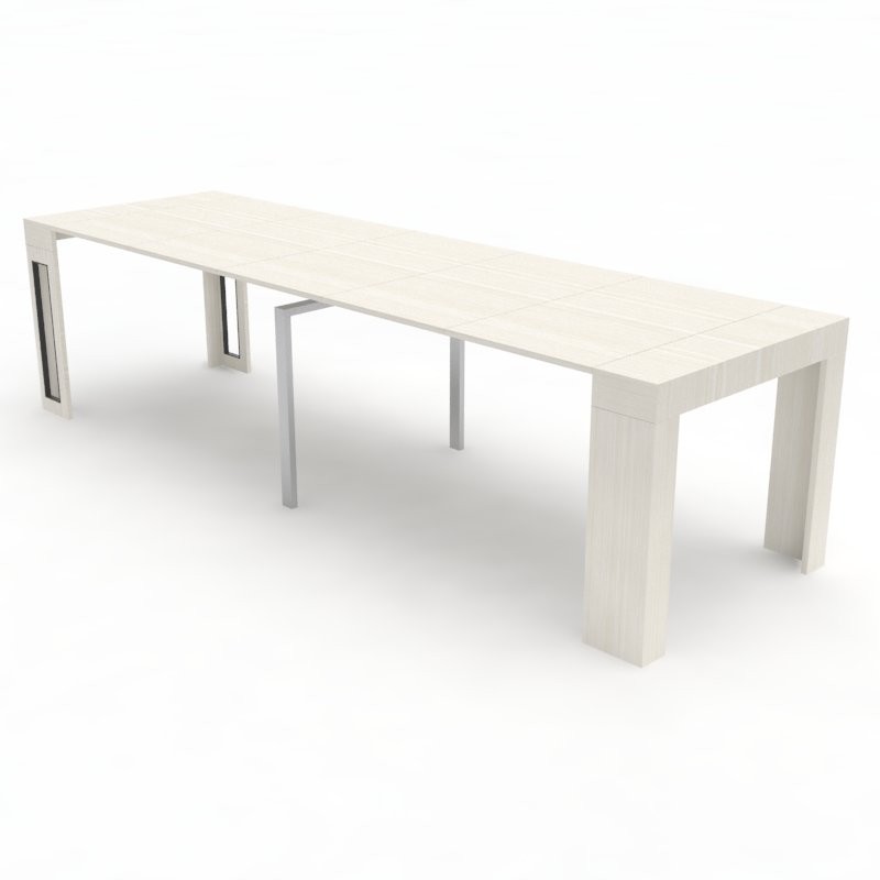 bellissima console di arredamento colore bianco e frassinato. Si allunga oltre due metri per un tavolo da 10 ed oltre persone anche 14 con il massimo di 3 metri di lunghezza . Chiuso e un bellissimo tavolino di arredo . Spedizione perfetta , imballo accurato. Arrivato senza nessun graffio e nessuna ammaccatura