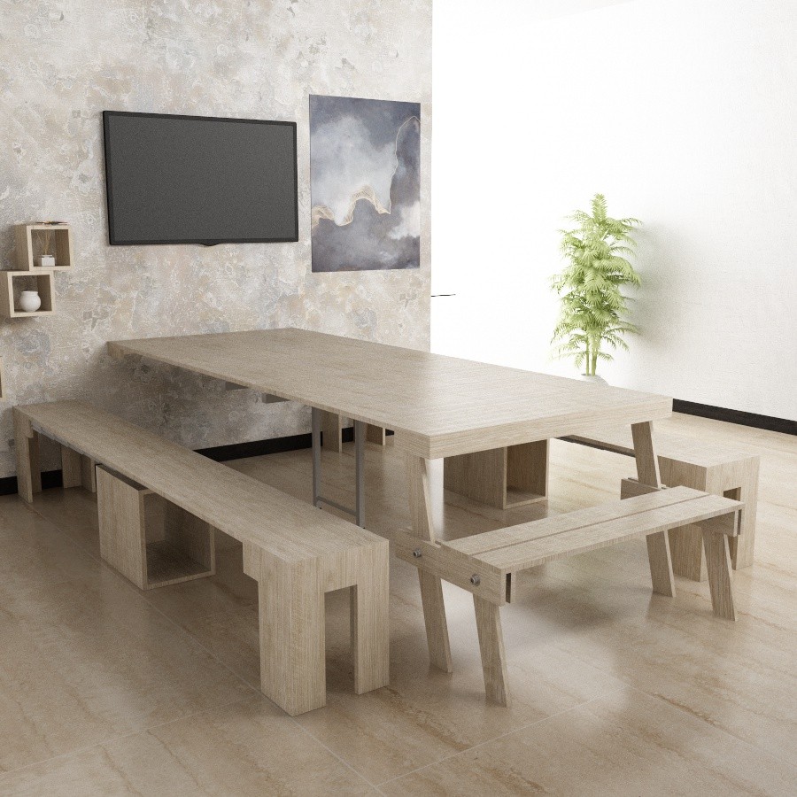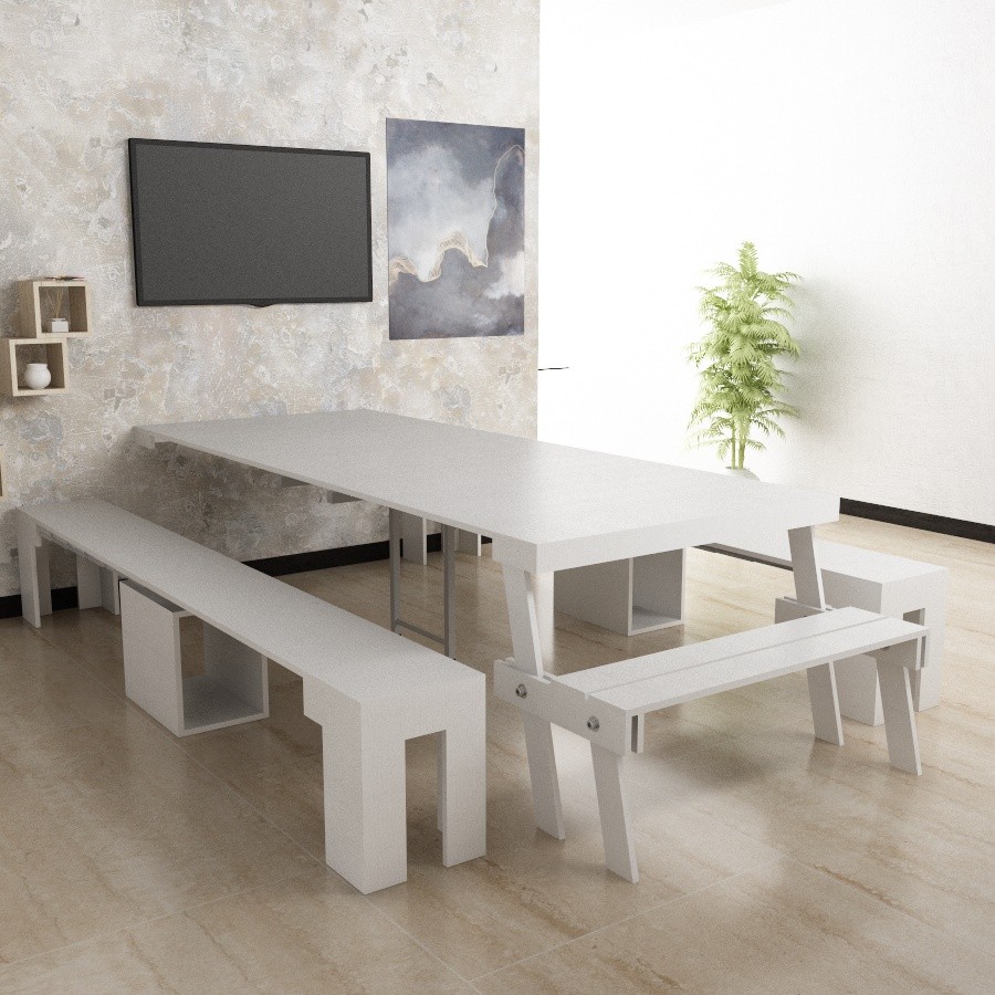 - Dimensioni: L120 P40 H80 - Allungabile 300cm,Colore: Bianco Larice