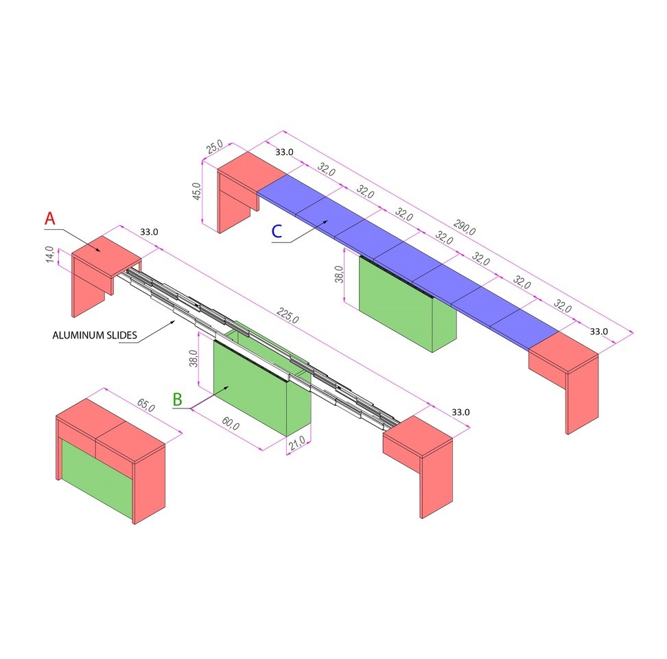 - Kit: Kit x2 Panche allungabili,Colore: Petrolio