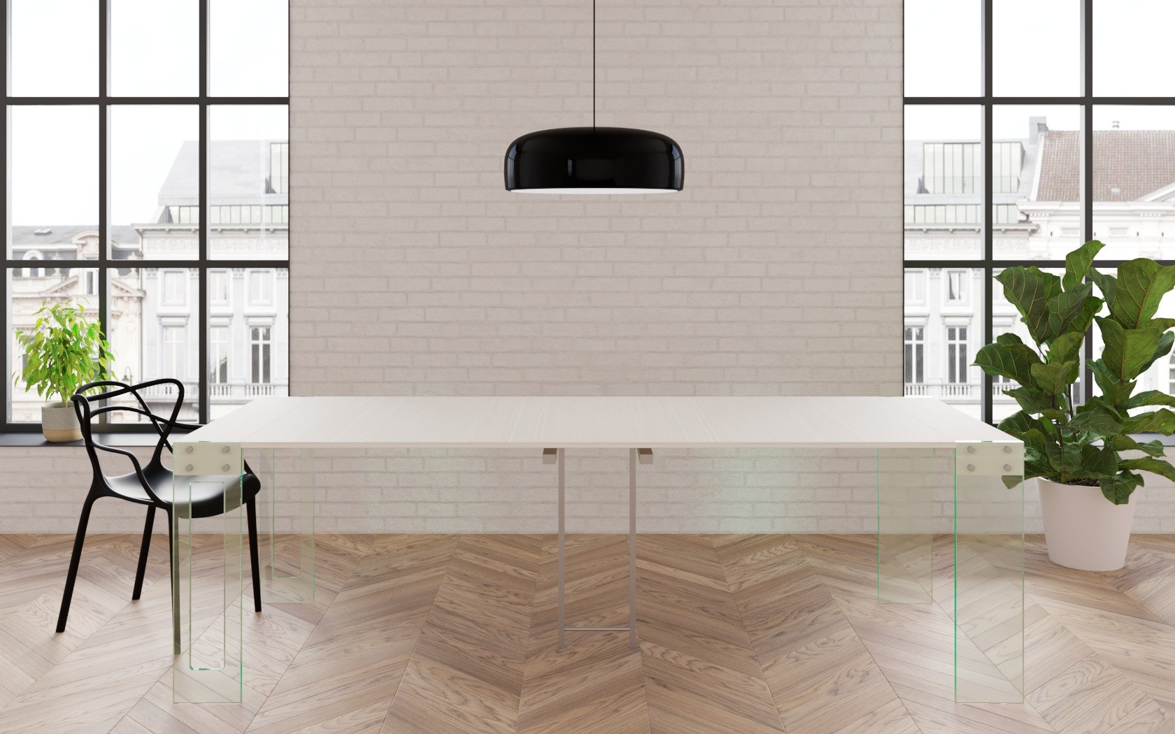 - Dimensioni: L93 P40 H77 - allungabile 200 cm,Colore: Bianco Lucido