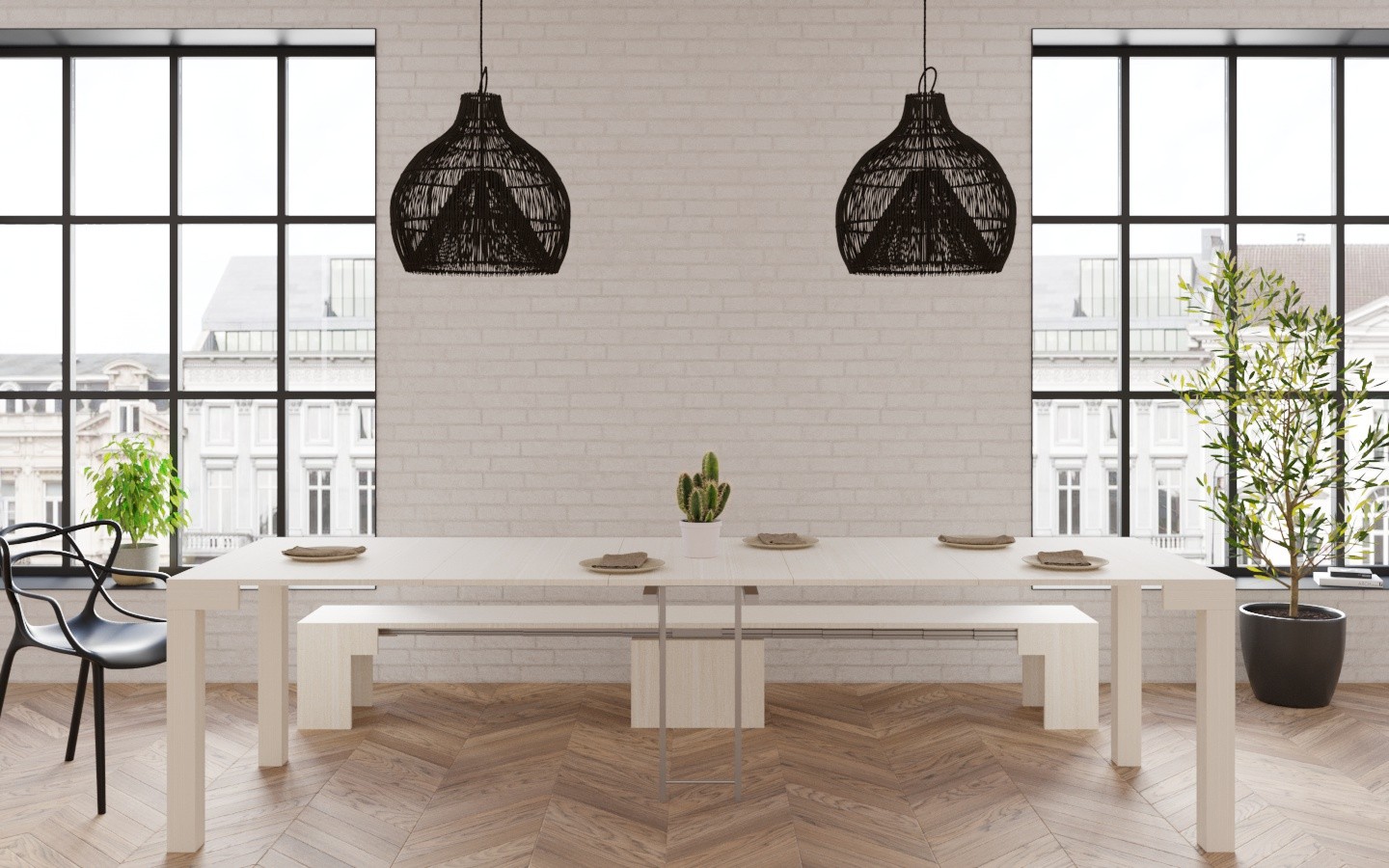 - Dimensioni: L90 P40 H77 - allungabile 200 cm,Colore: Bianco Frassinato