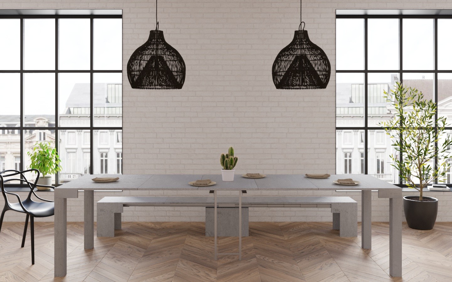 - Colore: Cemento,Dimensioni: L90 P40 H77 - allungabile 300 cm