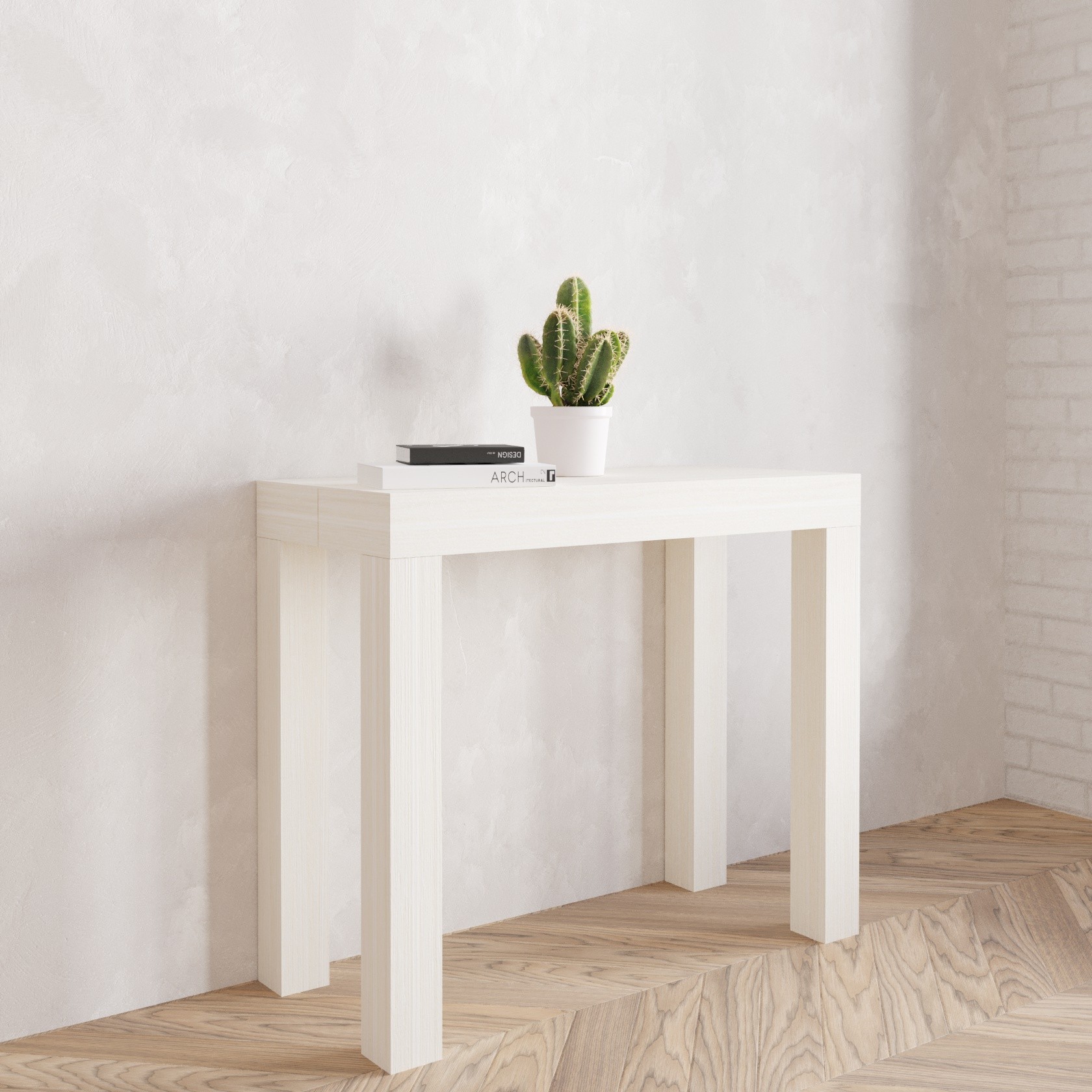 - Colore: Bianco Frassinato,Dimensioni: L90 P40 H77 - allungabile 250 cm