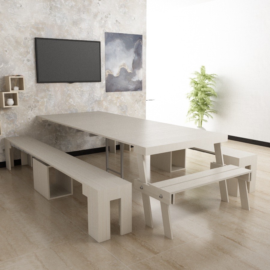 - Dimensioni: L120 P40 H80 - Allungabile 250cm,Colore: Bianco Frassinato