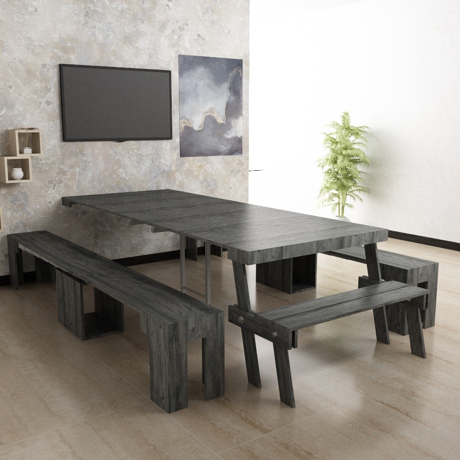 - Dimensioni: L120 P40 H80 - Allungabile 250cm,Colore: Rovere Grigio