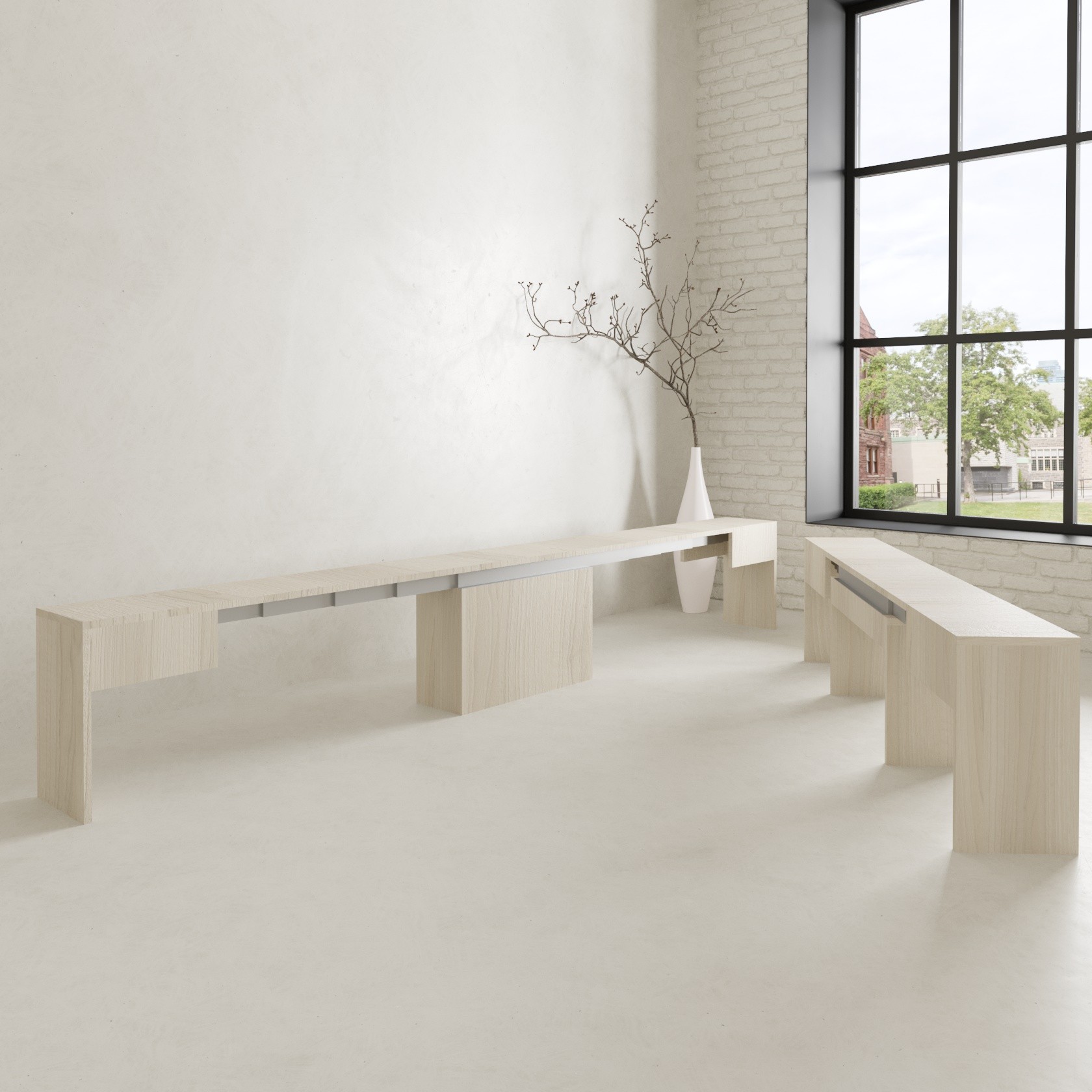 The Candy bench is practical and sturdy, usable as a low table for the living room or as a bench to sit on, extending in a few seconds up to 200, 250 or 300cm. The 48cm extensions are supplied with the bench. Unused extensions can remain inside the box. It fits perfectly under our consoles so as not to take up space when not in use.