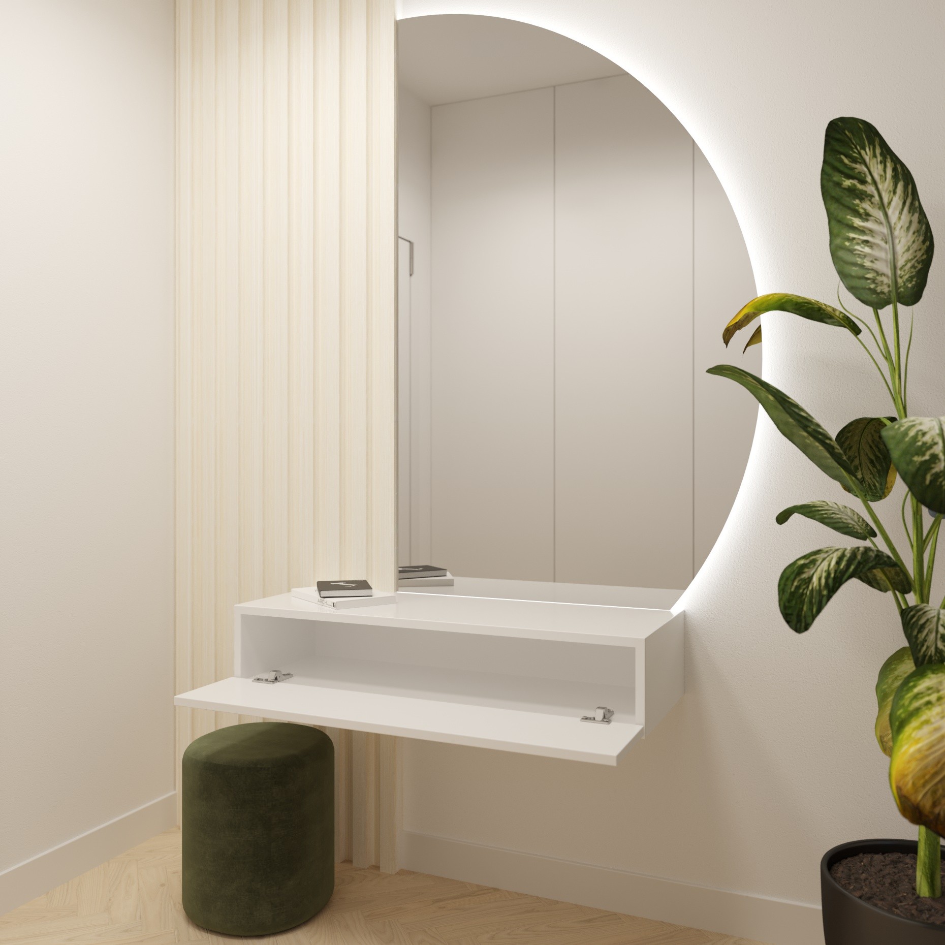 - Colore: Bianco Frassinato,Illuminazione: Con LED