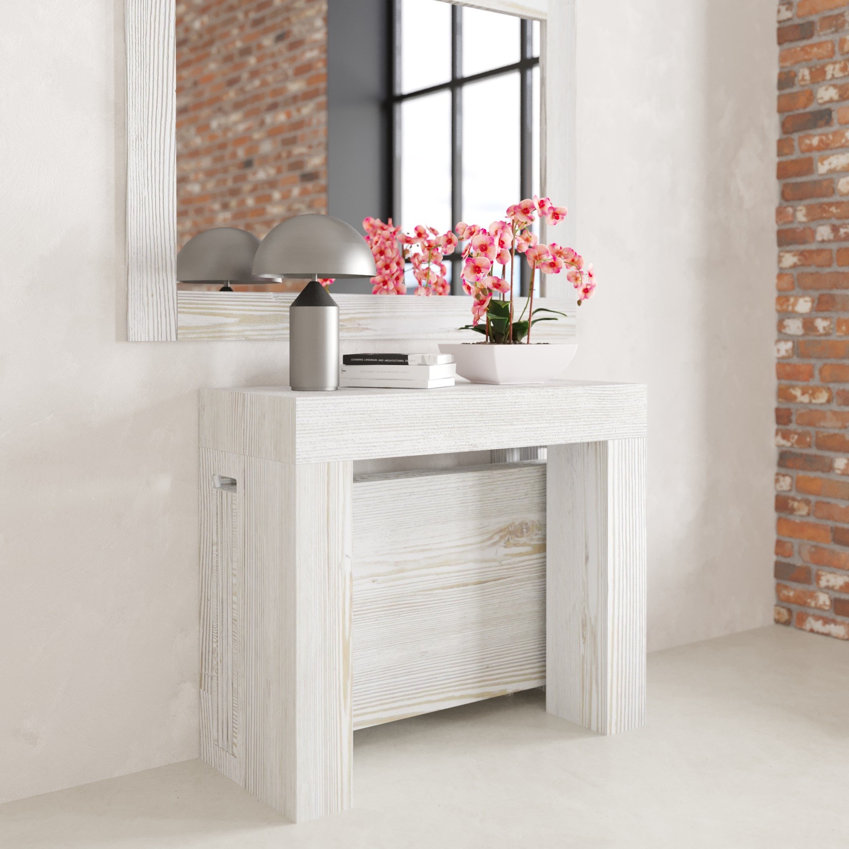 - Dimensioni: L90 P40 H77 - allungabile 200 cm,Colore: Bianco Frassinato