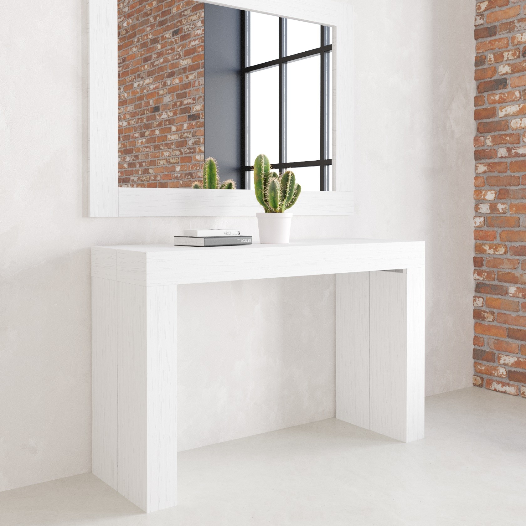 - Colore: Bianco Frassinato,Dimensioni: L120 P40 H77 - Allungabile 250cm