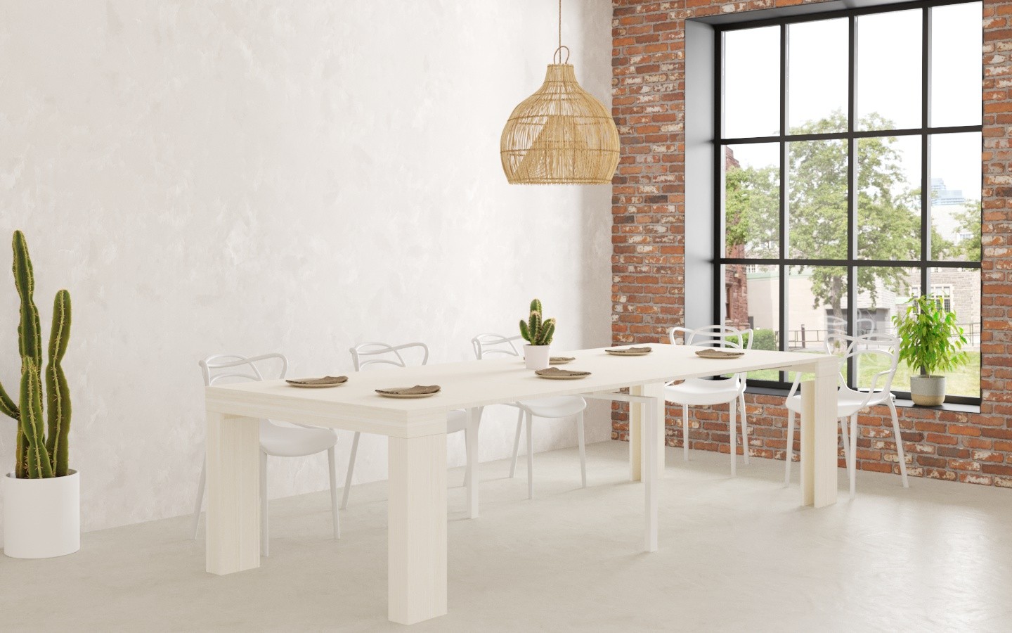 - Dimensioni: L120 P40 H77 - Allungabile 300cm,Colore: Bianco Frassinato