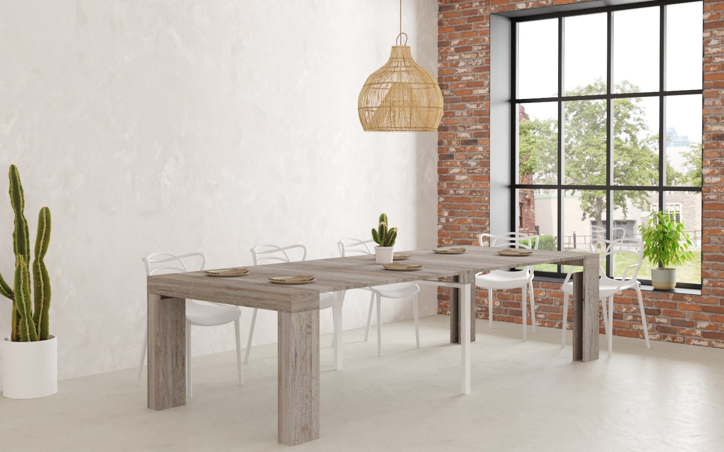 - Colore: Pino grigio Jackson,Dimensioni: L120 P40 H77 - Allungabile 300cm