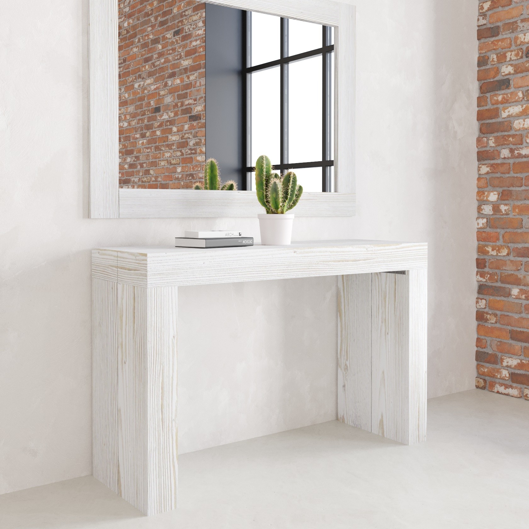 - Colore: Bianco Frassinato,Dimensioni: L120 P40 H77 - Allungabile 200cm