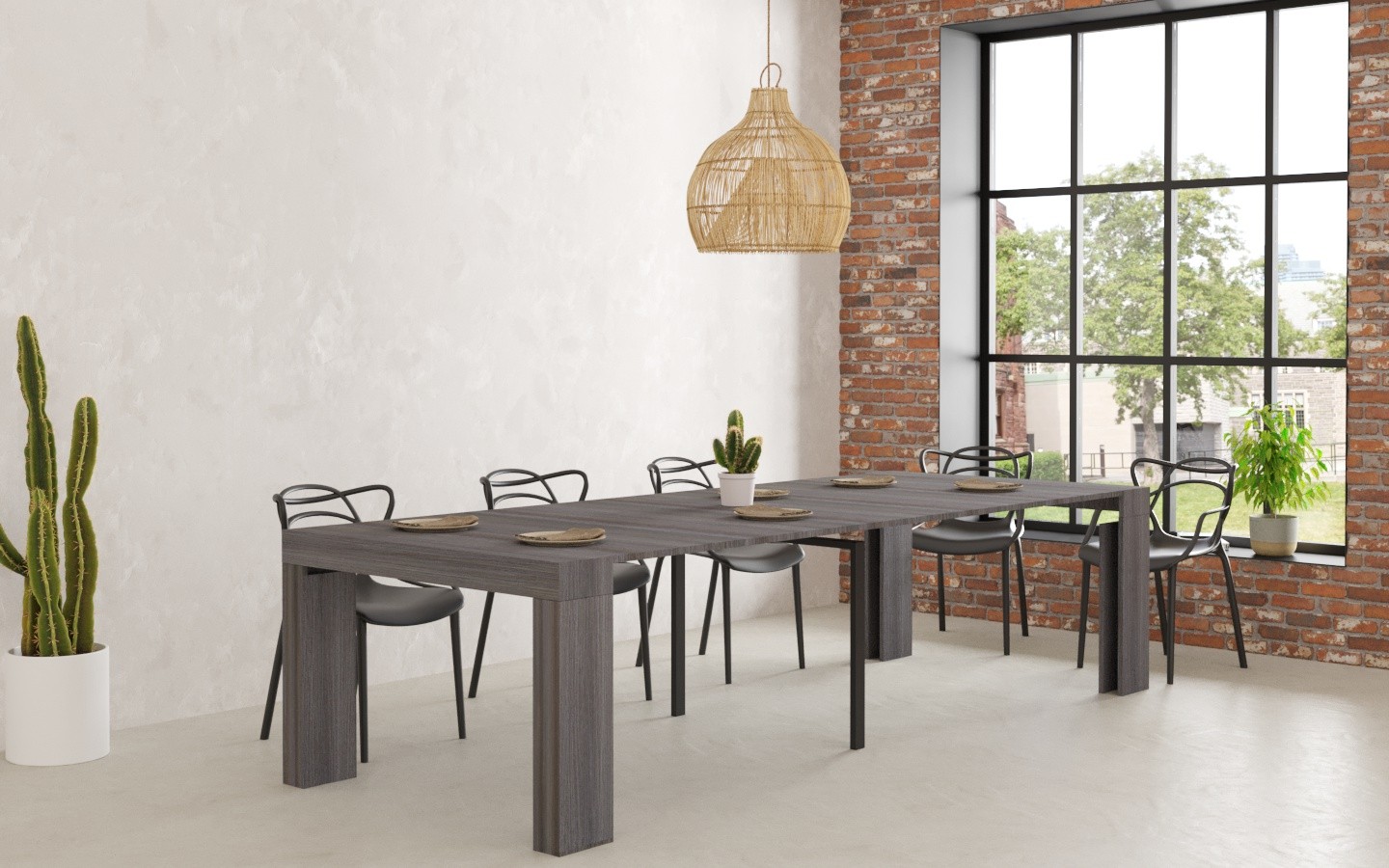 - Dimensioni: L120 P40 H77 - Allungabile 300cm,Colore: Cemento