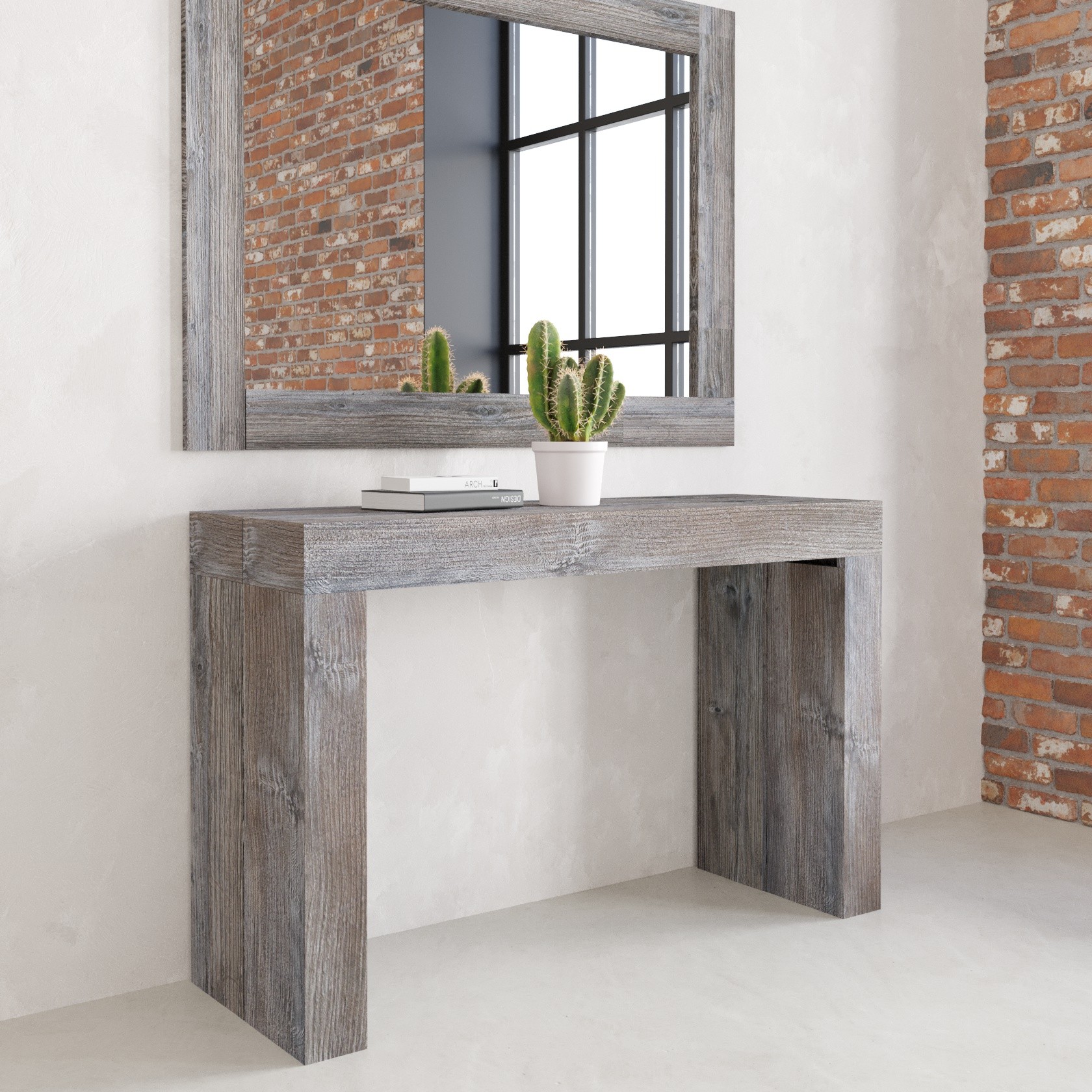 - Colore: Pino grigio Jackson,Dimensioni: L120 P40 H77 - Allungabile 200cm