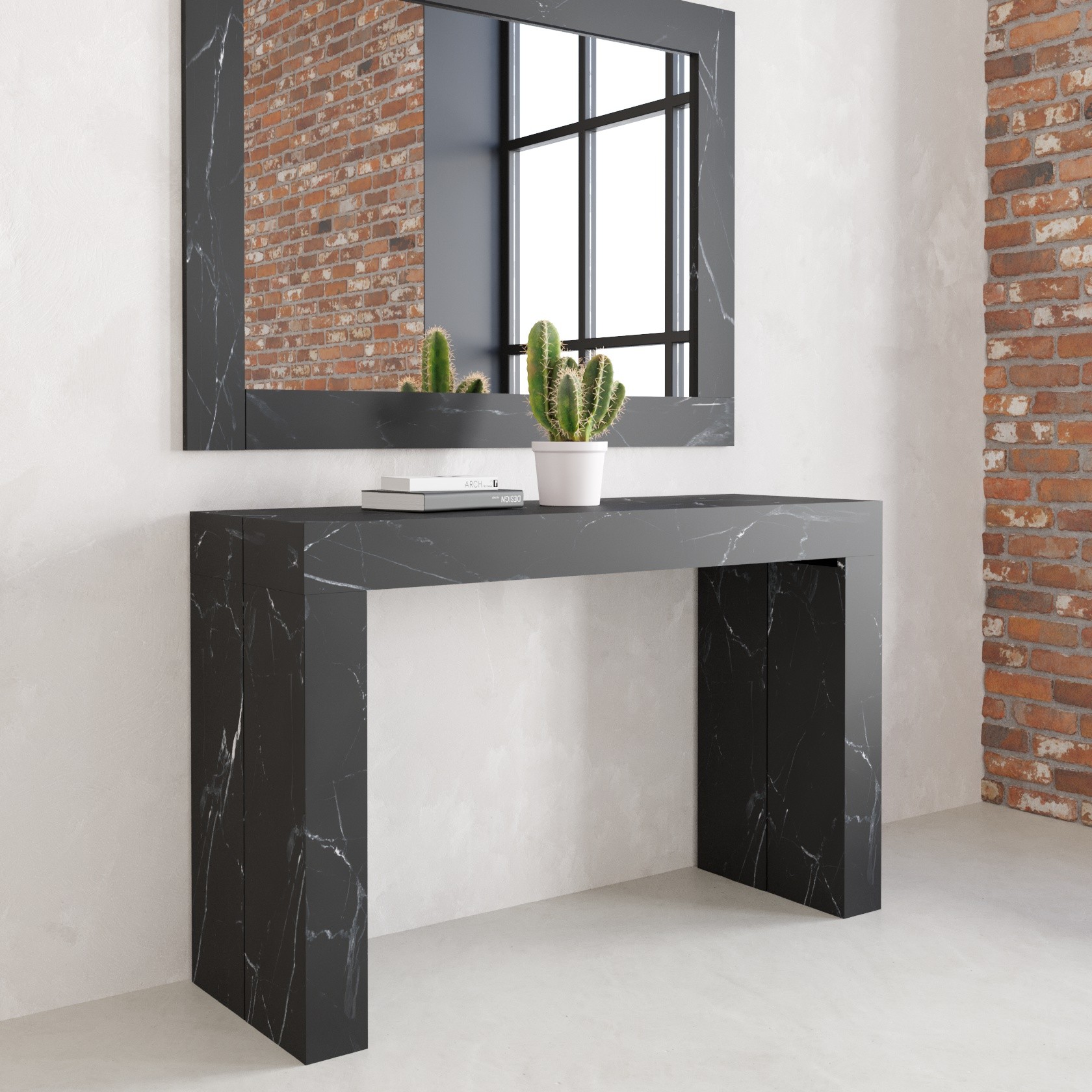 - Dimensioni: L120 P40 H77 - Allungabile 250cm,Colore: Marmo Nero