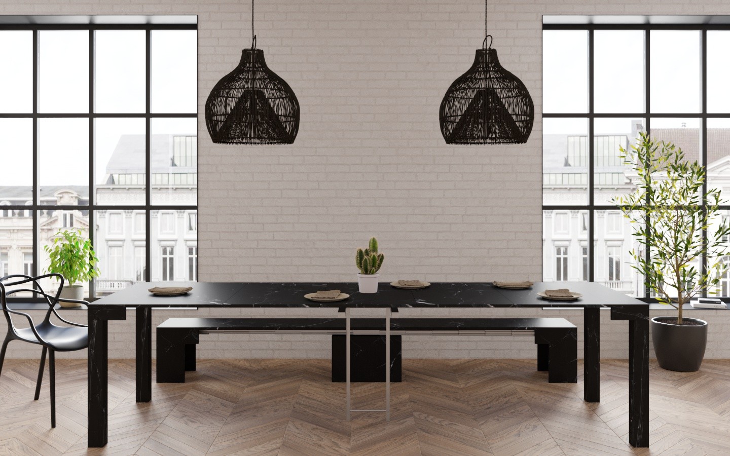 - Colore: Marmo Nero,Dimensioni: L90 P40 H77 - allungabile 200 cm