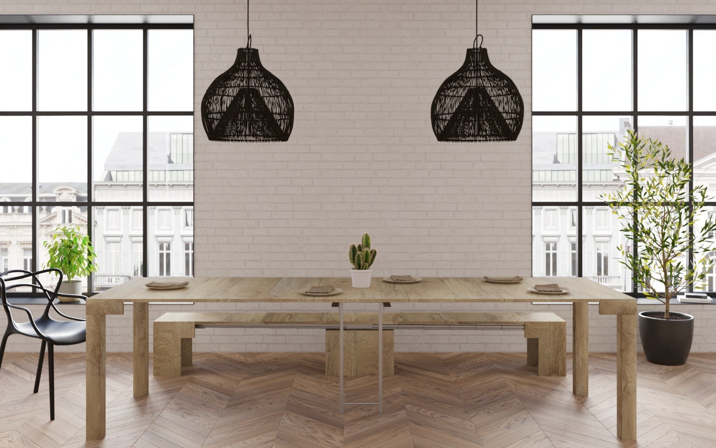 - Colore: Rovere Naturale,Dimensioni: L90 P40 H77 - allungabile 300 cm