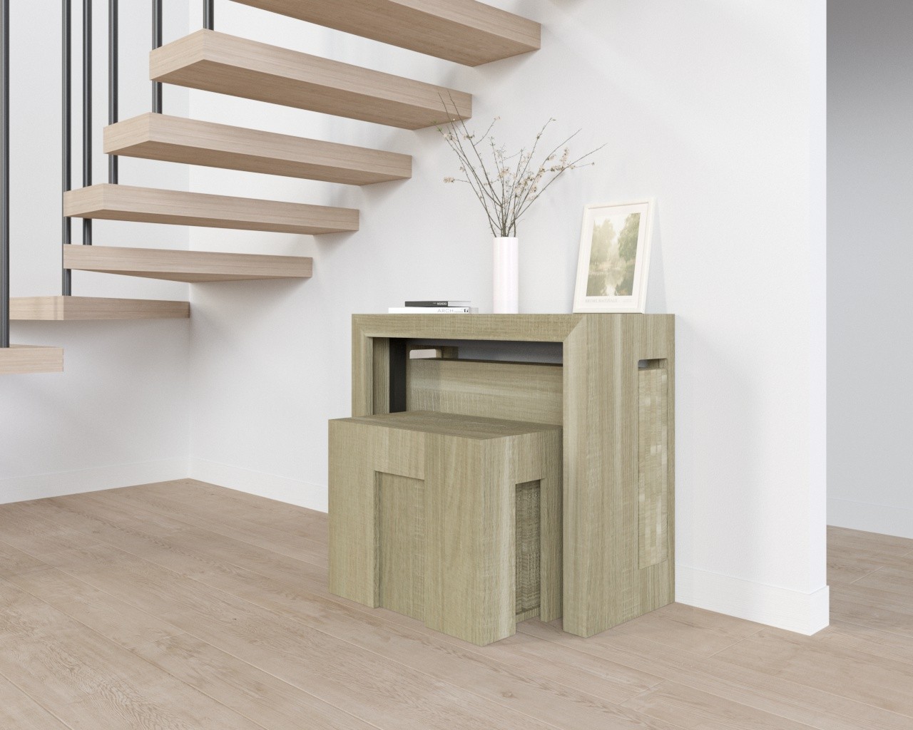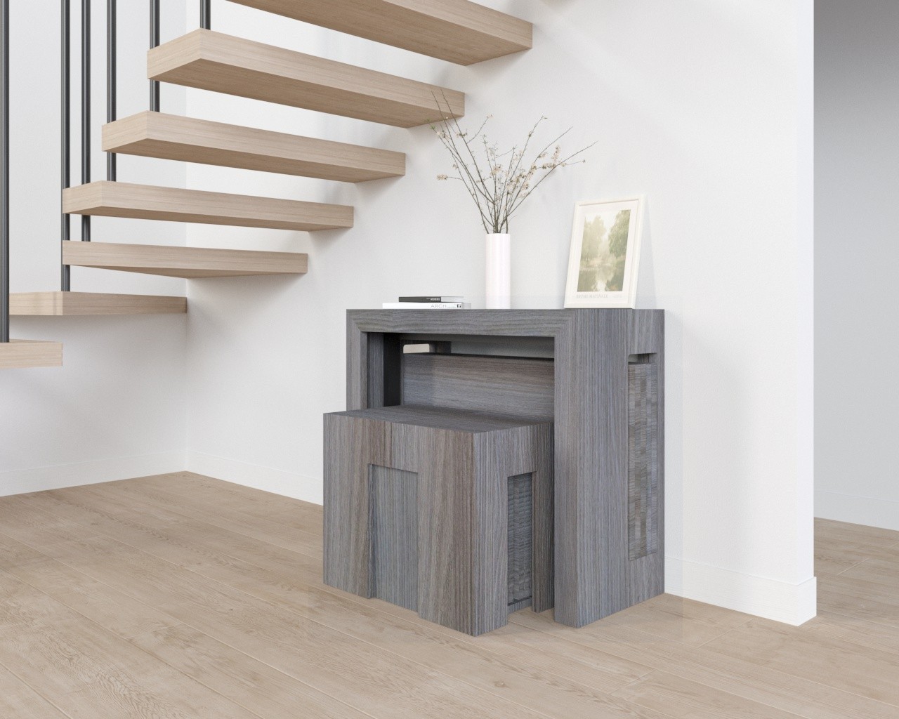 Design intelligente e funzionale! La consolle allungabile è stata una scelta brillante per il nostro soggiorno. Le panche integrate sono comode e lo spazio extra è essenziale quando ospitiamo cene