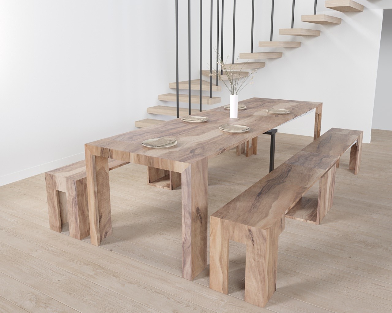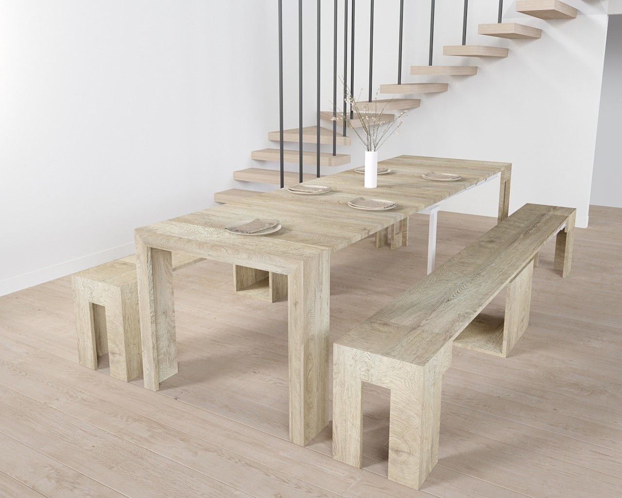Fantastica soluzione per lo spazio ridotto! La consolle allungabile con panche integrate è perfetta per il mio piccolo appartamento. Posso estenderla fino a 3 metri quando ho ospiti e ripiegarla quando serve